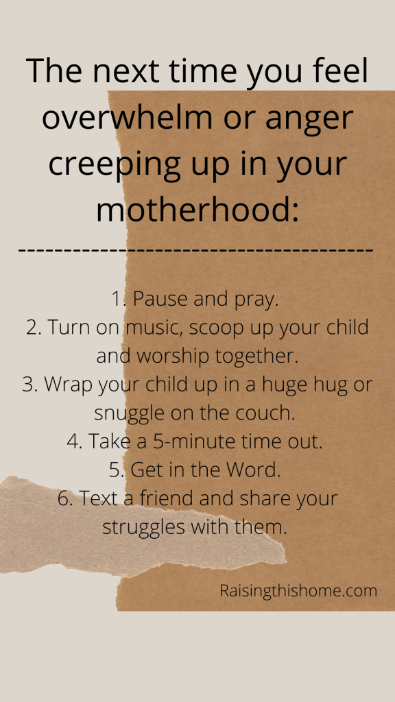 The next time you feel overwhelm or anger creeping up in your motherhood: