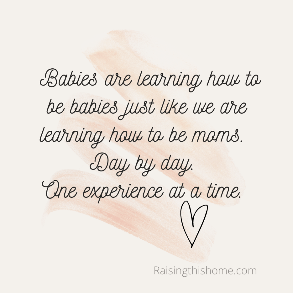 Not only does this thought save my sanity, it also helps to slow the mom guilt that I’m not “doing enough” or “doing it right”. My baby is able to grow and learn and develop at his own pace. I can actually enjoy babyhood without freaking out if he isn’t where so-and-so’s baby is. I am listening to my own “mom gut” and observing my baby to find out what works best for the both of us.
