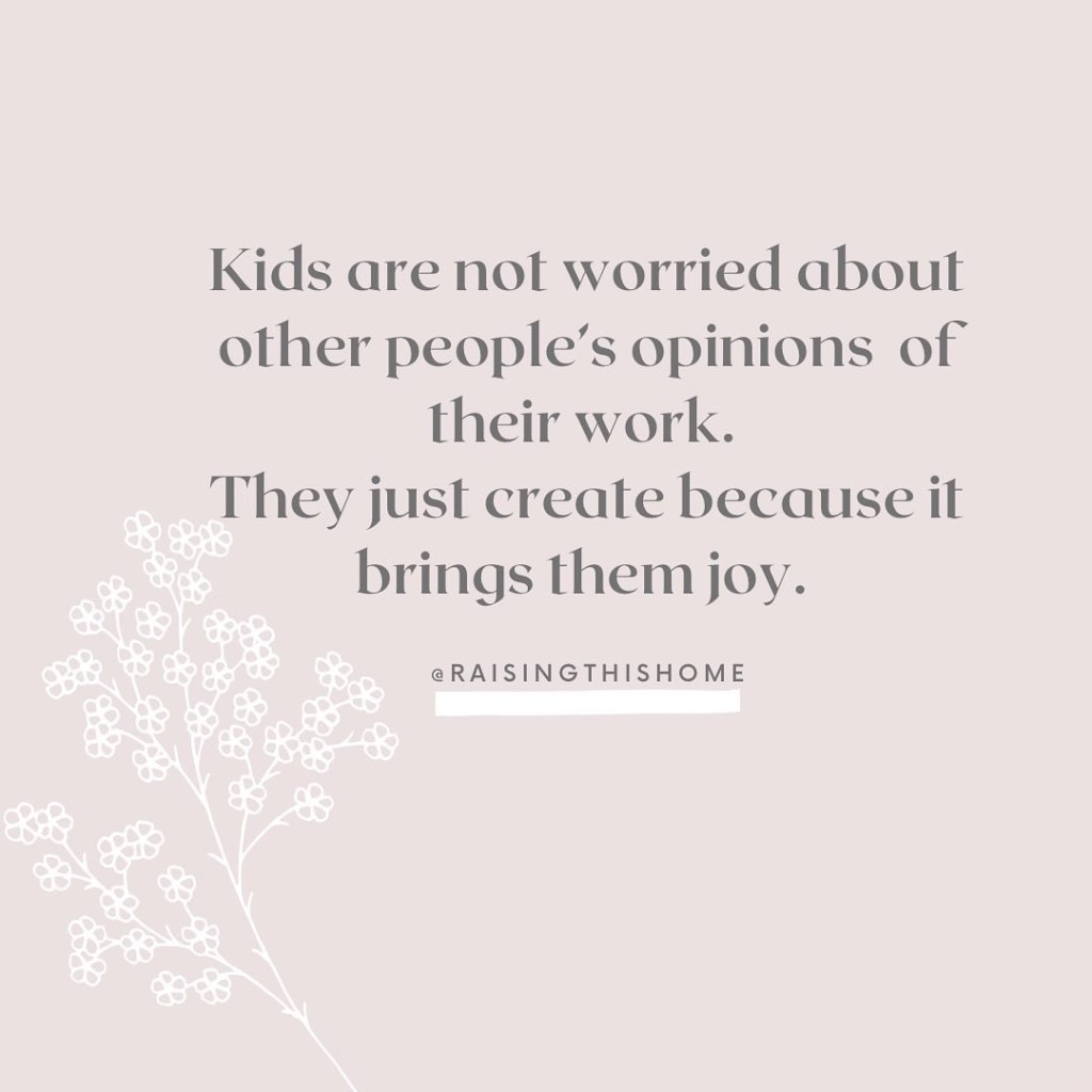 Kids are not worried about other peoples opinions of their work. They just create because it gives them joy.