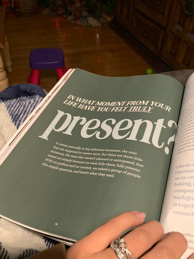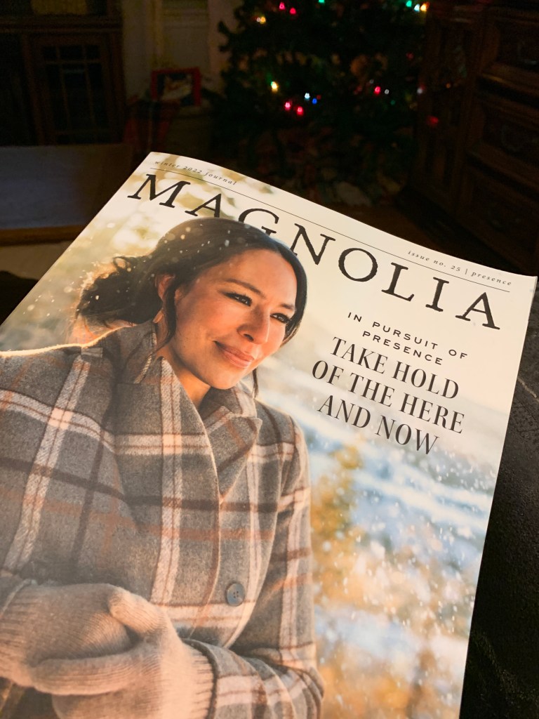 After a quick (and not at all cheap) trip through chick-fil-a, we changed into comfy clothes and well, here we are. At the moment my phone is charging so I grabbed the new Magnolia magazine that came in the mail a few days ago. I always put off reading them, waiting for the “perfect time”, as if there is such a thing. Especially with kids. But since I couldn’t waste time scrolling away (an unfortunate favorite pastime of mine), I finally cracked open the magazine.