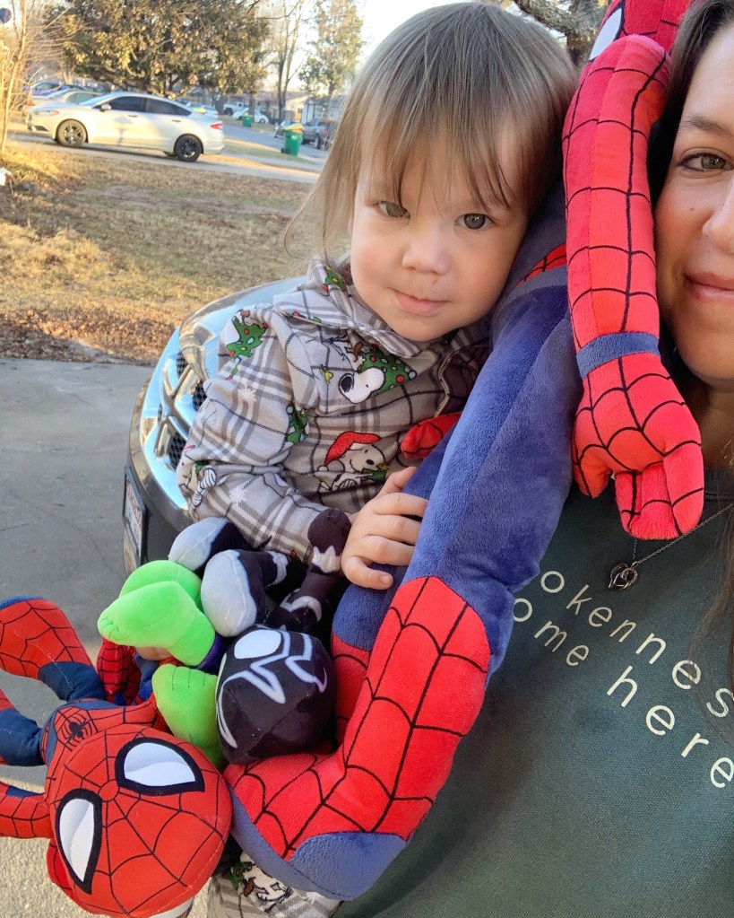 -her toddler and his 5 superhero friends.